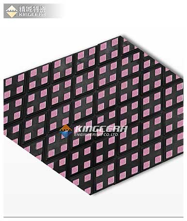 精城新一代滾筒陶瓷橡膠(NMC-B)是采用先進(jìn)的熱硫化工藝將表面帶有顆粒的耐磨陶瓷按照一定的布局硫化在特種橡膠內(nèi),然后粘貼在滾筒表面以代替?zhèn)鹘y(tǒng)的橡膠,起到增強(qiáng)皮帶與滾筒摩擦系數(shù)、提高滾筒使用壽命的作用。同時,每列陶瓷間的溝槽,便于排水排泥,在惡劣環(huán)境下保證正常運(yùn)行。一般可延長滾筒使用壽命10倍以上。