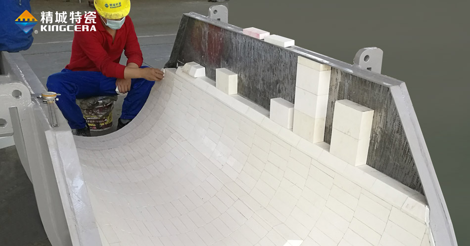1、選擇大塊厚瓷:小塊陶瓷通常是使用陶瓷粘膠等拼接在一起,在大塊物料的沖擊下,這種陶瓷容易從拼接處開裂,會造成陶瓷碎裂、脫落等現(xiàn)象。而陶瓷厚度不夠也容易被直接砸碎、砸裂,失去防磨防沖擊的效果。因此,在強(qiáng)沖擊工況中盡量選擇大塊厚瓷。