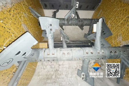 精城特瓷為福建某攪拌站提供陶瓷襯板防磨服務,8天完成安裝投產。針對傳統襯板(高錳鑄鐵等)壽命短(約8萬方)、易磨損的痛點,精城陶瓷襯板經1600℃高溫燒結,耐100℃高溫,質保3年或60萬方,綜合成本大幅度降低。