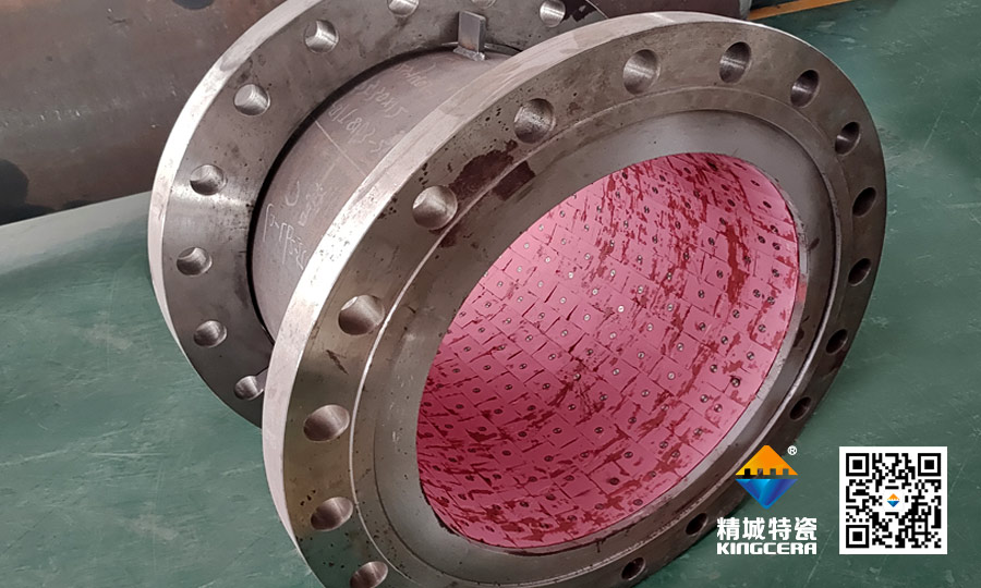 該耐磨陶瓷鋼管由鋼管、粘膠及耐磨陶瓷三層組成,鋼件采用20#整體熱彎成型(區別于離心澆鑄管道焊接或卷板成型),陶瓷采用與清華聯合研發的350度耐溫無機粘膠粘接在鋼件內壁