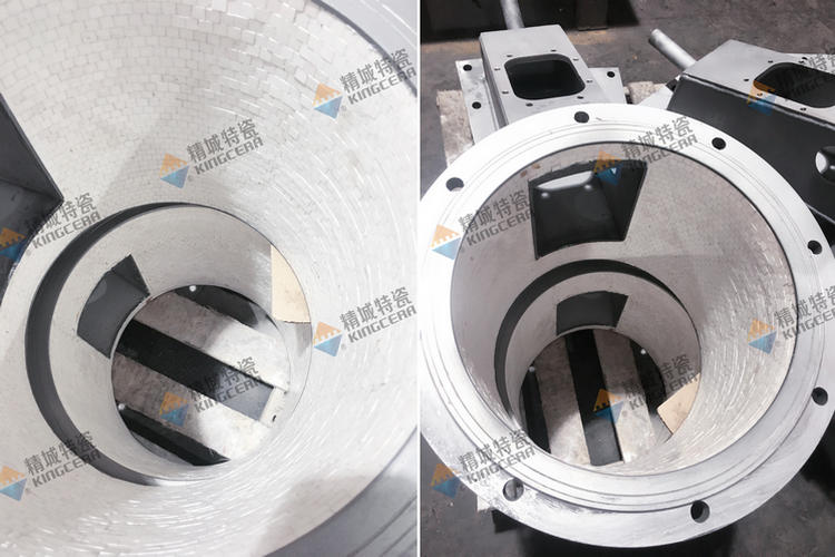 耐磨陶瓷管道在云母紙制作過程中承擔著槳體輸送作用,槳體為云母原材料。槳體是通過壓力輸送的,輸送力度大,對管道的磨損特別嚴重。在以前沒有用到耐磨陶瓷管道時,管道使用壽命短,維修和更換成本增大。經常導致設備停機,給廠家帶來很多的困擾和成本的投入。客戶第一次用到湖南精城的耐磨陶瓷管道時,發現這是個奇跡,生產投產以來從來沒有過設備問題,輸送順暢,大大增加成品量。這是第二次購買湖南精城的管道。當時項目負責人對我說“小李呀!這設備做出來真的沒話說,像工藝品一樣,不管是外觀還是實用性,這外觀我們沒有要求做得這么好,沒想到你們對自己的制作工藝要求這么高.......”然后直接兩個大拇指對著我。我說“感謝您的高度認可,我們會繼續努力,我們一直以國外出口的產品制作為要求,對外觀,尺度,等細節,我們要求質檢三道管卡,質檢人員下車間,隨制作人員隨時隨地質量檢查。保證每一件產品到客戶手中是滿意的”。