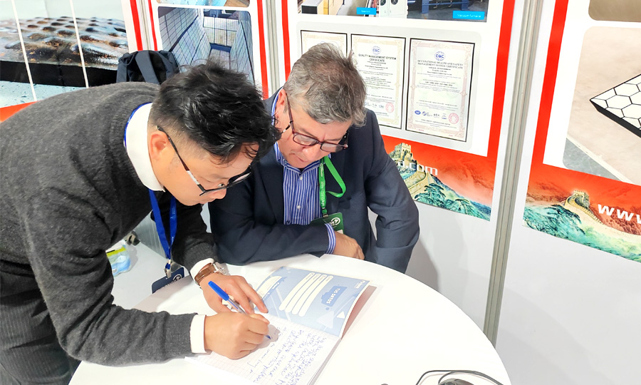 展會歷時四天,從當地時間6月3日至6月6日,吸引了近十萬的參觀者。在這四天里,精城特瓷全程參與,充分展示了其強大的技術實力與產品優勢。ZTA陶瓷磚、無壓燒結碳化鈦磚、碳化鈦合金棒、鋼板橡膠陶瓷三合一襯板、陶瓷橡膠二合一襯板、高拋光結構陶瓷以及陶瓷滾筒包膠等一系列高端產品悉數亮相,其中尤以ZTA陶瓷和陶瓷滾筒包膠備受矚目,吸引了眾多參觀者的目光。